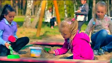 W spocie przygotowanym przez Krajową Radę Komorniczą widzimy trzy dziewczynki bawiące się w piaskownicy. Jedna z nich pożycza łopatkę do piasku, a później nie chce jej oddać. Trzecia dziewczynka wstawia się za okradzioną koleżanką i odbiera skradzioną zabawkę. Na koniec padają słowa: „Komornik nie zabiera, komornik oddaje”.