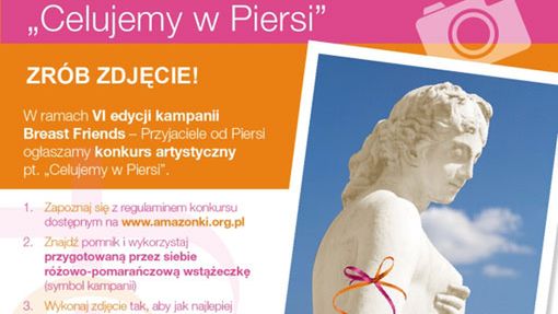 W tym roku, w ramach kampanii, można wziąć udział w konkursie artystycznym „Celujemy w Piersi”, promującym wiedzę o tym, że tylko pełne rozpoznanie typu raka piersi pozwala na zastosowanie optymalnej dla danej pacjentki terapii, a przez to zwiększa jej szanse na wyleczenie. Zasady konkursu są proste: należy znaleźć pomnik, zrobić mu zdjęcie i wkomponować w nie przygotowaną przez siebie różowo-pomarańczową wstążkę (albo przymocować wstążkę do pomnika). Fotografię trzeba wysłać e-mailem, przygotowując wypowiedź na pytanie „Dlaczego należy oznaczać typ nowotworu piersi?”, oraz wypełnić odpowiedni formularz ze strony www.amazonki.org.pl. Do wygrania atrakcyjne nagrody. Ale nie one są przecież ważne, tylko podniesienie świadomości społecznej na temat nowotworu piersi, szczególnie wśród mężczyzn, którzy powinni wspierać swoje partnerki w badaniach profilaktycznych i późniejszej walce z chorobą. Razem łatwiej jest pokonywać problemy!